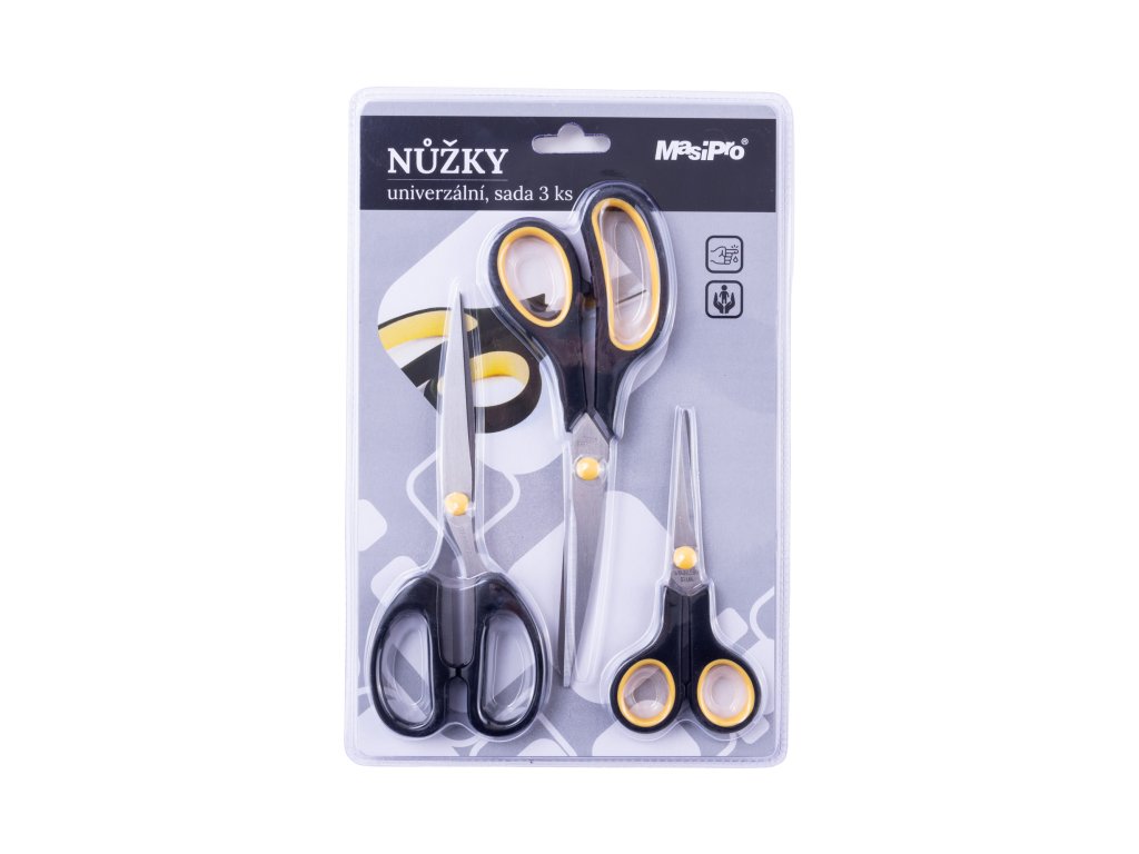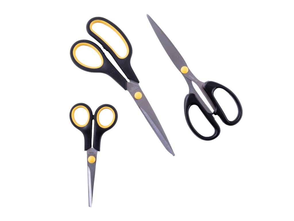 Set kancelářských nůžek s ergonomicky tvarovanou plastovou rukojetí pro pohodlný úchop. Čepel nůžek je vyrobena z kvalitní nerezavějící oceli